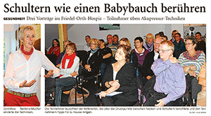 Vor sechs Monaten kam eine Frau, die an einem Schlaganfall litt, zu mir in die Praxis. Seit drei Jahren wurde sie regelmäßig und erfolgreich von einer Kollegin nach dem Bobath Konzept behandelt. So hatte sie wieder gelernt, mit beiden (!) Beinen auf dem Boden zu stehen und sich statt mit dem Rollstuhl zu Fuß ein paar Meter fortzubewegen. Mit ihrem „hemiplegischen“ Arm hatte sie mehr Probleme; er schwoll oft bis zu Ballongröße an, weswegen sie bis zu fünfmal wöchentlich zu Lymphdrainage ging. Sie klagte über Kopfschmerzen - ein tiefes Brummen - und Einschlafstörungen. „Ich kann nicht abschalten, die Gedanken laufen einfach weiter“. Ein weiteres großes Problem aus ihrer Sicht stellt die Störung der Oberflächensensibilität im linken Fuß dar: Sie stieß sich immer wieder, ohne es zu merken. Gesamten Beitrag lesen >